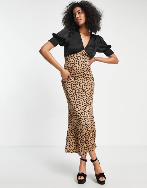 Never Fully Dressed Contrast Puff Sleeve Maxi Dress In Black Leopard Print Asos