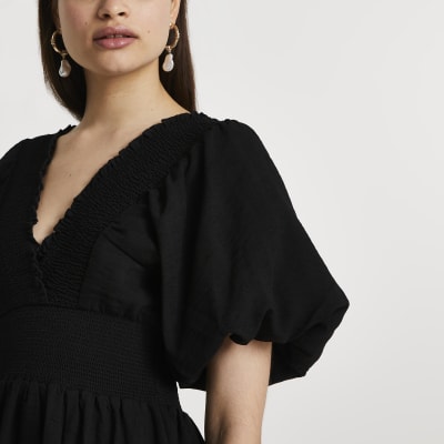 Black Puff Sleeve Maxi Dress River Island